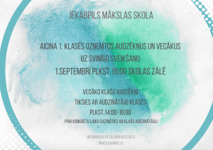 Jēkabpils mākslas skola aicina 1. klases uzņemtos audzēkņus un vecākus uz svinīgo sveikšanu 1.septembrī plkst. 15:00 skolas zālē.Vecāko klašu audzēkņi