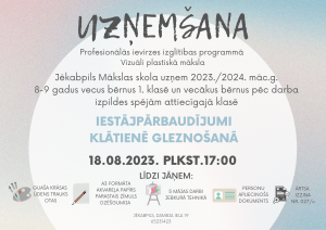 Jēkabpils Mākslas skola gaida jaunos audzēkņus mācībām Profesionālās ievirzes izglītības programmā Vizuāli plastiskā māksla 2023./2024. māc.g. 18. augustā, plkst. 17:00