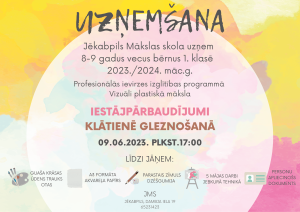Š. g. 5., 6., 7., 12., 13., 14. jūnijā no plkst. 10.00 – 13.00 Jēkabpils Mākslas skolas audzēkņiem norisināsies mācību
