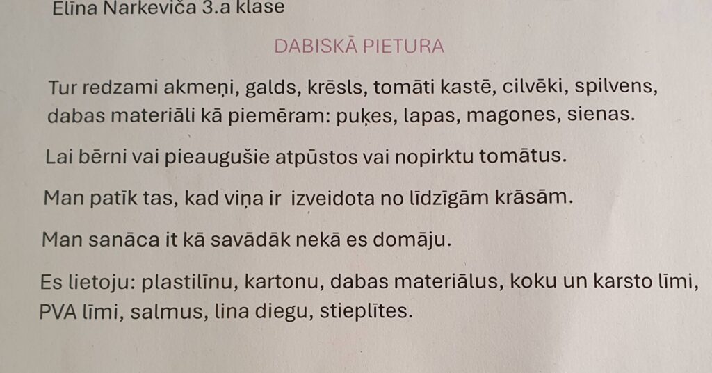 Tās ietvaros tapa 3. klašu izstāde PIETURA. Skolotājas Dinas Lukstiņas iedvesmoti un atbalstīti, 3.a un 3.b klašu audzēkņi Darbs Materiālā stundās veidoja individuālu Sapņu PIETURU.