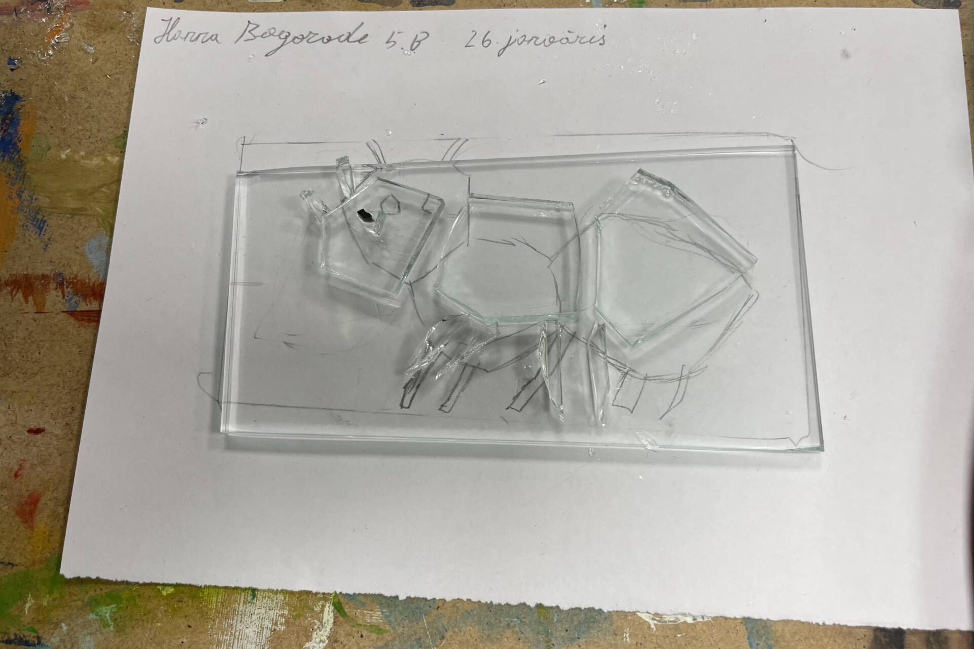 Tur guvām pirmo pieredzi stikla griešanā un veidojām paši savas kompozīcijas no stikla gabaliņiem. Tā bija interesanta iespēja viesoties kaimiņu pilsētā un iegūt jaunas zināšanas!